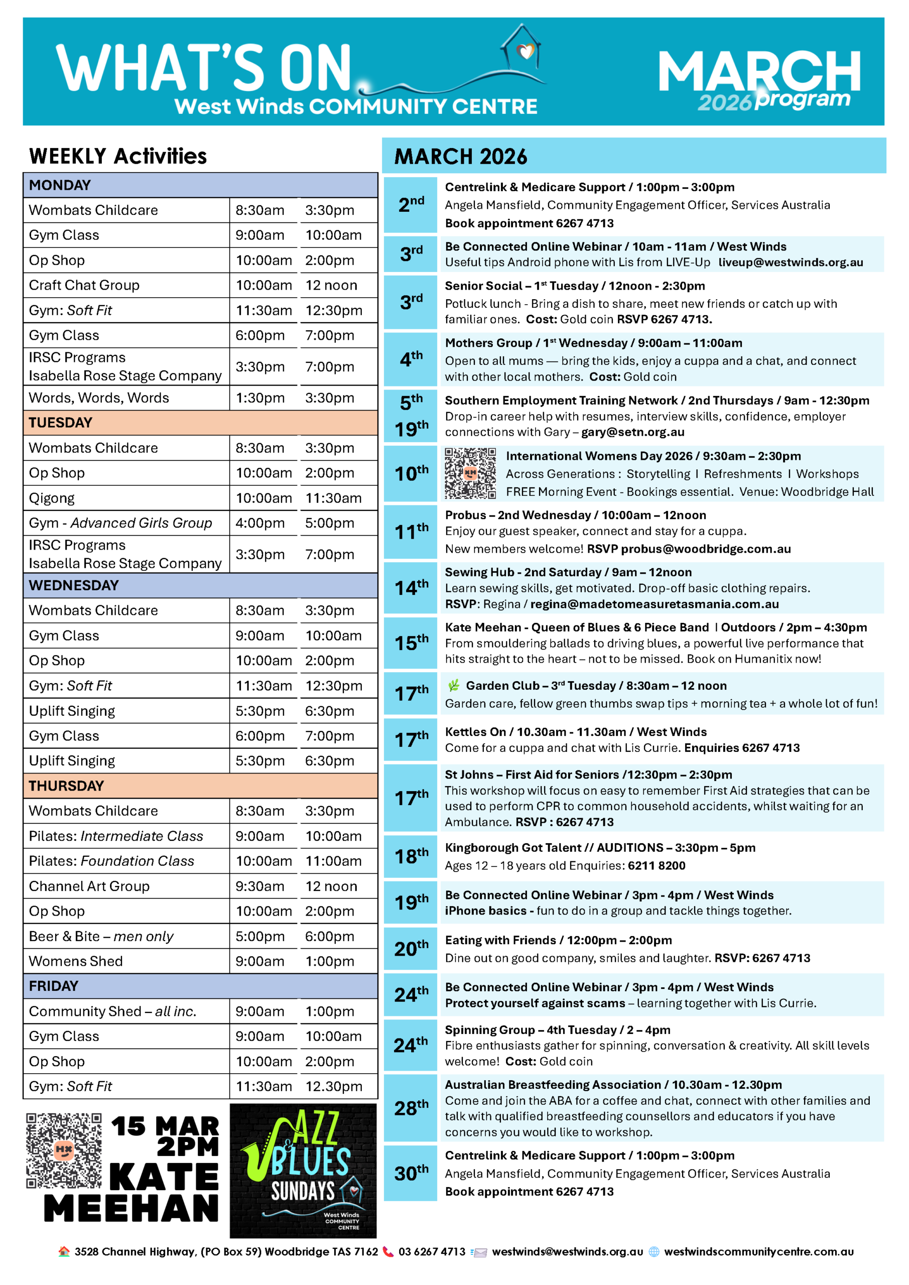 Our in-house monthly “What’s On @West Winds” is a great way to keep up with all the exciting events we have going on – download it today and check out what’s happening at the centre. We hope to see you soon!